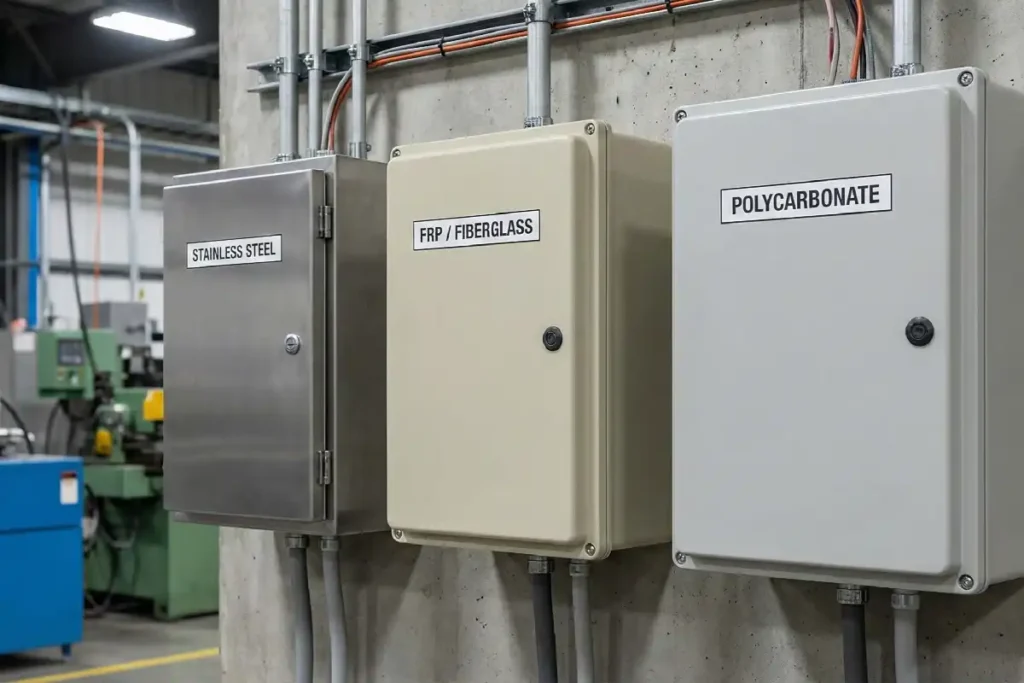 Carbon steel is used a lot for enclosures. It is tough and does not cost much. Many indoor jobs use carbon steel because it lasts.